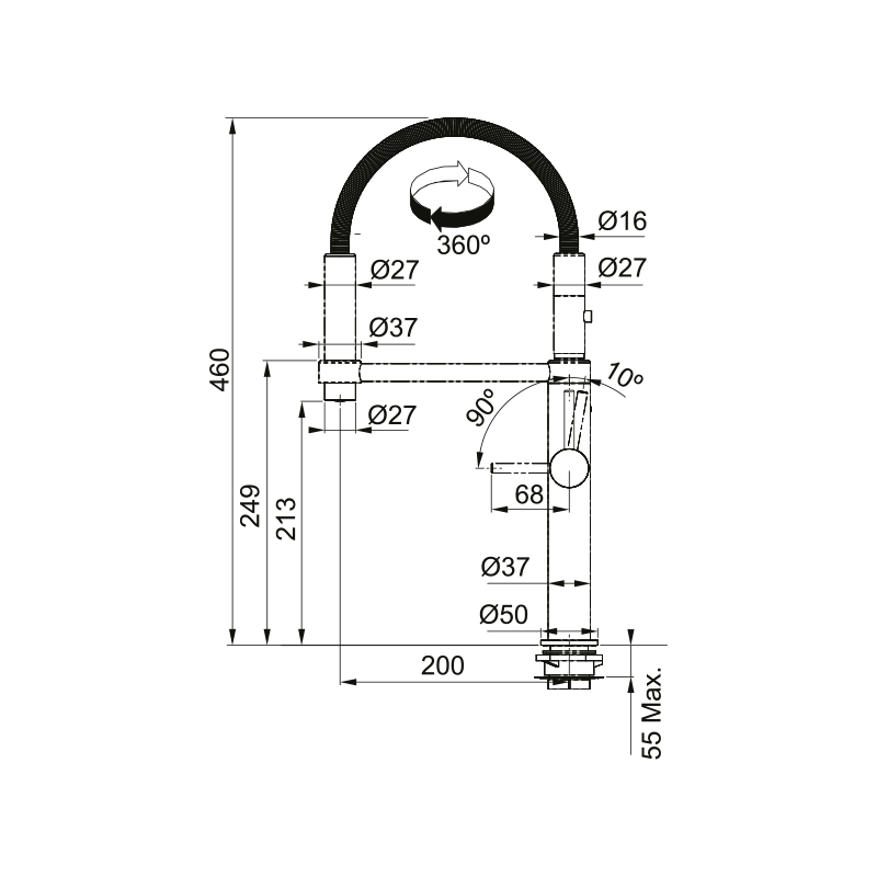 • Maišytuvo tipas: maišytuvas su ištraukiama žarna-dušeliu / normaliu srautu (su jungikliu)