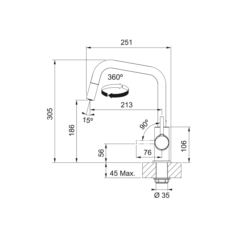 • Maišytuvo tipas: maišytuvas su ištraukiama žarna