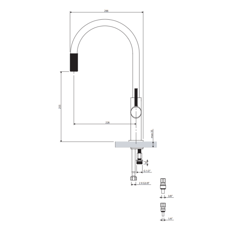 Maišytuvą galima įsigyti su universalių jungčių rinkiniu, leidžiančiu prijungti jį prie bet kokios filtravimo sistemos, sumontuotos standartinėje plautuvės spintelėje.