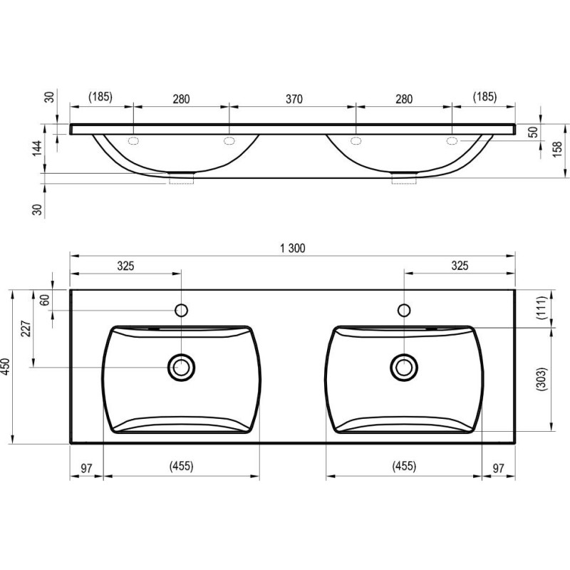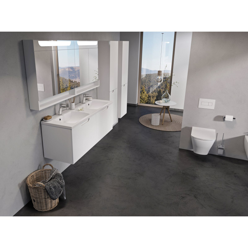 Ravak Classic Slim Double Washbasin – elegantiškas dvigubas praustuvas pagamintas iš lieto kompozito (dolomito ir dervos). Sukurtas montavimui ant sienos arba įmontuojamą spintelę, turi integruotą perpildymo sistemą ir dvi angas maišytuvams.