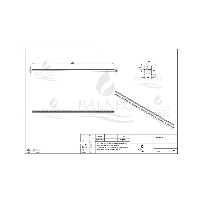 Kairės pusės nuolydžio profilis stiklui (120 cm) – tai inovatyvus sprendimas, kuris ne tik padidina dušo zonos estetiką, bet ir užtikrina nepriekaištingą funkcionalumą. Specialus dizainas su integruotu šoniniu kraštu suformuoja vienpusį nuolydį link latako, todėl nereikia pjaustyti plytelių į negražius trikampius ar kurti tradicinio „voko“.