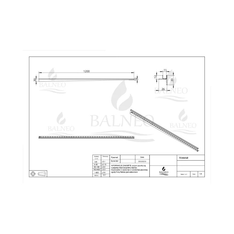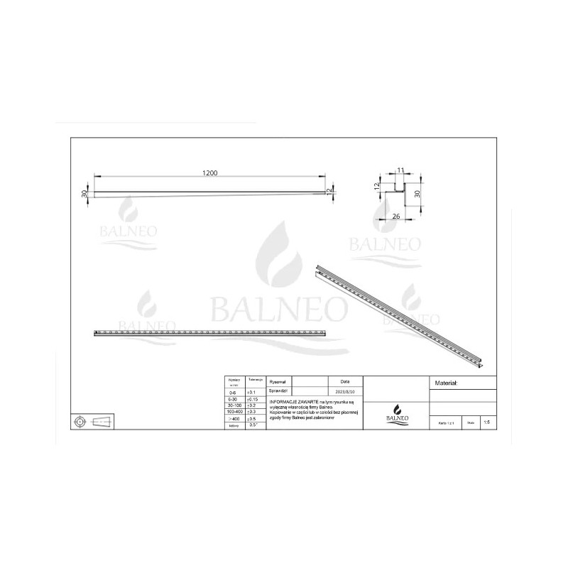 Dešinės pusės nuolydžio profilis stiklui (170 cm) – tai inovatyvus sprendimas, kuris ne tik padidina dušo zonos estetiką, bet ir užtikrina nepriekaištingą funkcionalumą. Specialus dizainas su integruotu šoniniu kraštu suformuoja vienpusį nuolydį link latako, todėl nereikia pjaustyti plytelių į negražius trikampius ar kurti tradicinio „voko“.