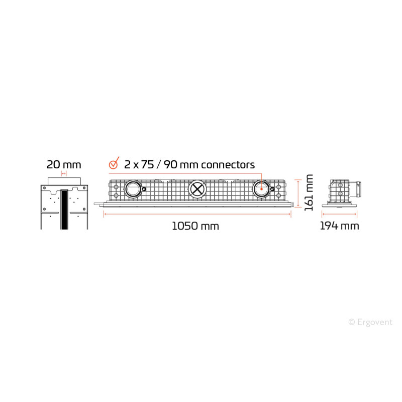 Ergovent LINEO PRO Puzzle 1050/90 – priglaistomas linijinis vėdinimo difuzorius, skirtas montuoti į gipso kartono lubas ar sienas. Po montavimo difuzorius glaistomas ir dažomas kartu su paviršiumi, o matomas lieka tik siauras, estetiškas oro plyšys.