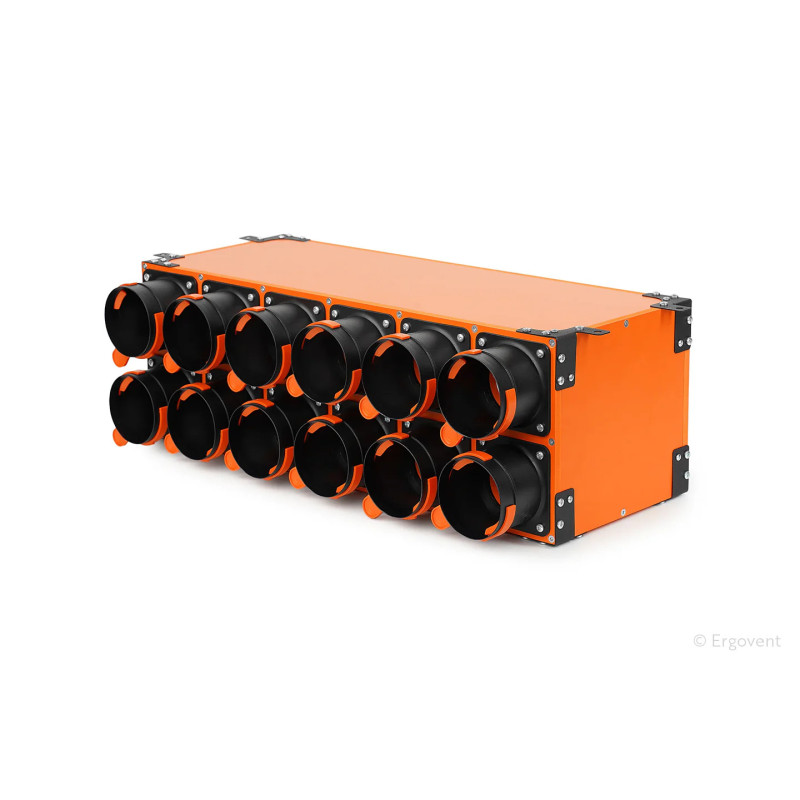 Dėžė skirta oro paskirstymui iš vieno didesnio ortakio į kelis mažesnius (12 × 75 mm), todėl puikiai tinka rekuperacinėms ir mechaninėms vėdinimo sistemoms. Termiškai izoliuoti sieneliai padeda apsaugoti sistemą nuo kondensacijos, užtikrina geresnį darbinį efektyvumą ir ilgaamžiškumą.