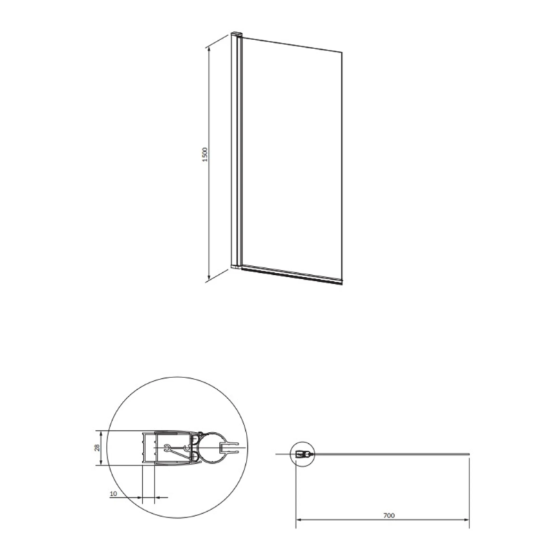Jai būdinga vieno stiklo konstrukcija, kurios plotis 70 cm ir aukštis 150 cm.