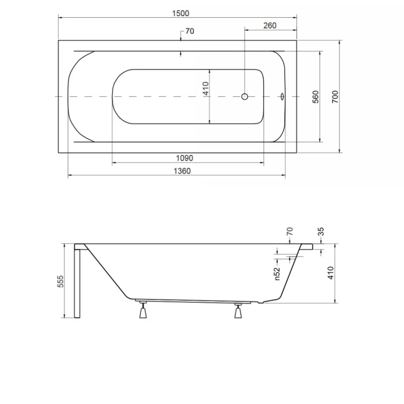 Ergonomika ir komfortas: Gilus vonios dubuo ir patogiai nuožulnus atlošas užtikrina maksimalų atsipalaidavimą.